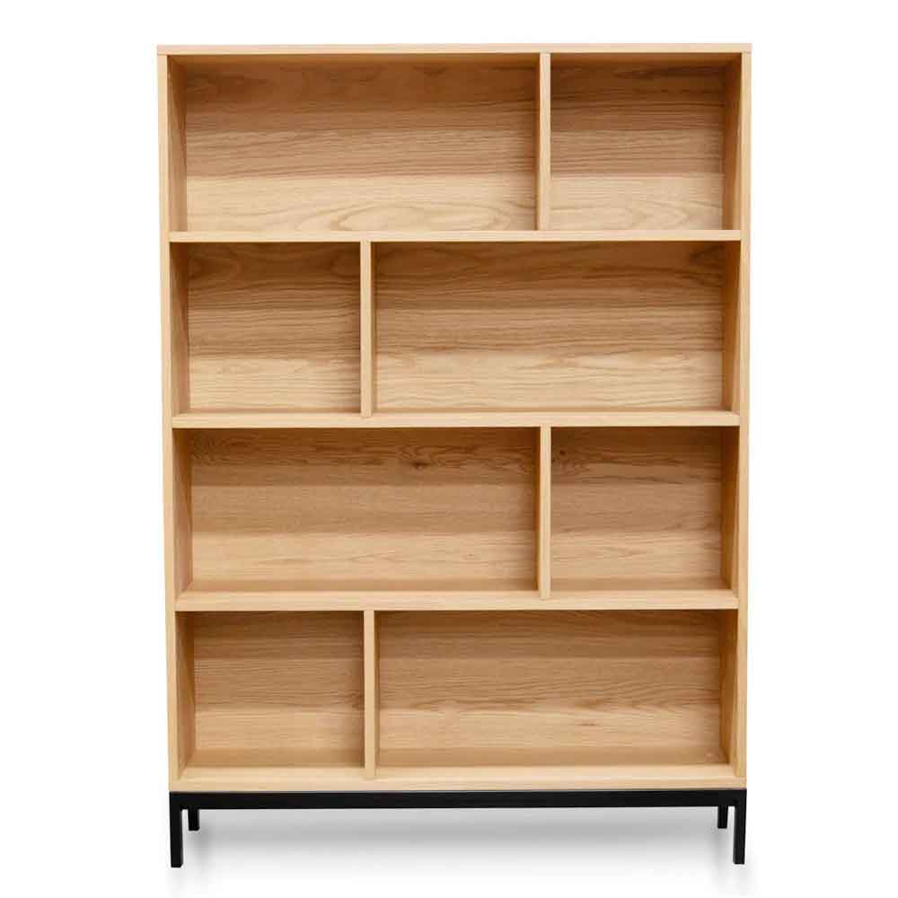 Featuring 8 x shelves made from resilient and durable natural wood veneer. Stands on a metal base and legs with a powder coat finish.
