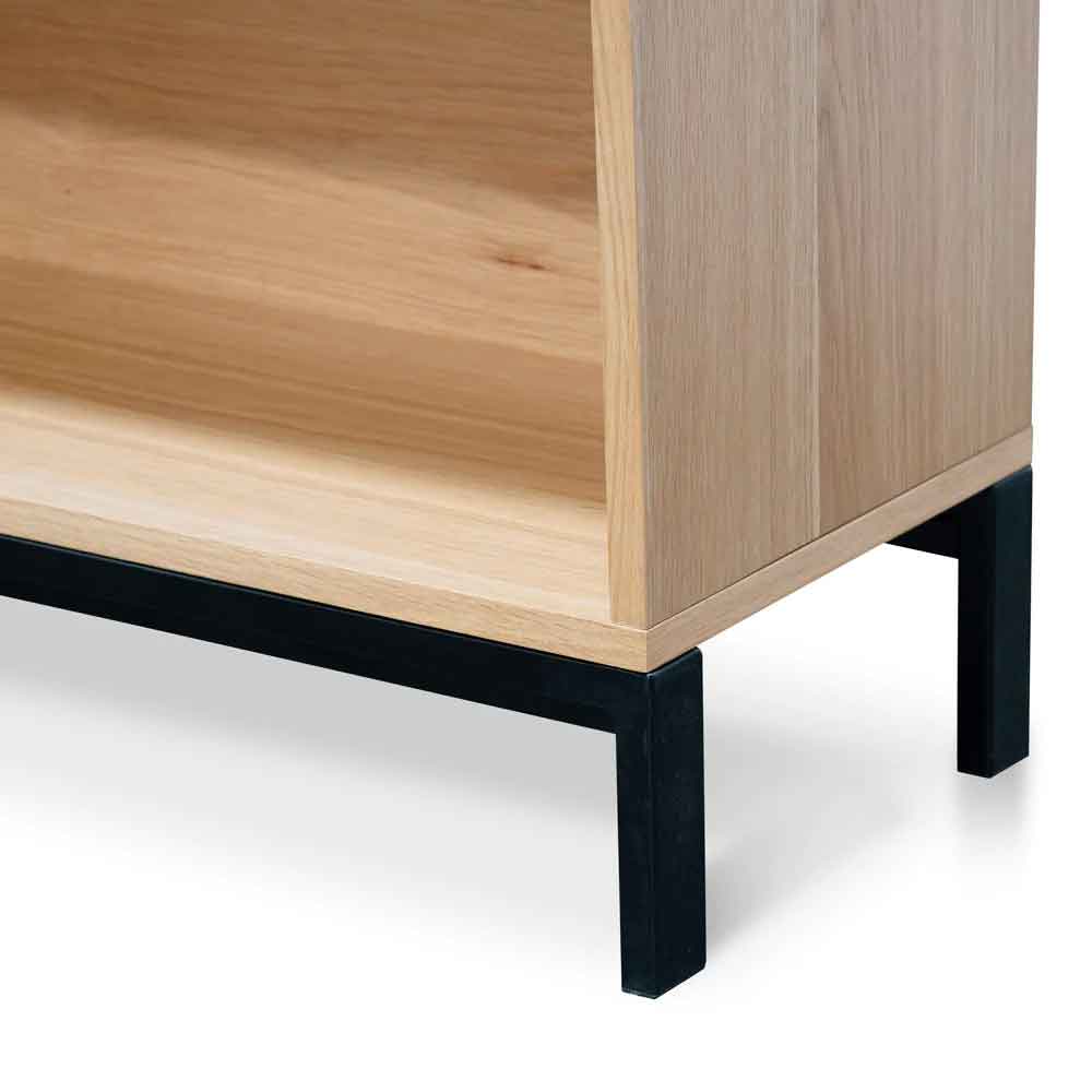 Featuring 8 x shelves made from resilient and durable natural wood veneer. Stands on a metal base and legs with a powder coat finish.